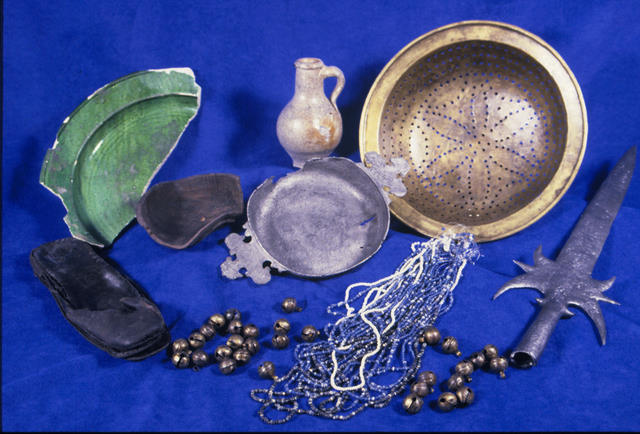 Some metal artifacts-primarily those made of iron-were found covered in what is known as concretion, a multilayered covering of calcareous mineral deposits and corrosion products that formed on the surface of the artifact as the material corroded underwater. When a metal object is immersed in saltwater, a layer of marine encrustration almost immediately begins to form. In many instances, the iron completely corrodes away over time and the concretion forms a natural mold of the original object. This mold was cleaned out and an epoxy resin poured inside to make an exact cast of the original. Often, X-rays of the artifacts indicated that not all of the original iron had corroded away. In these instances, the hollow area of the mold where there was no iron was cleaned out and epoxy poured into the void. The concretion was then removed from the surface of the artifact, a mold made of the whole object, and a cast made of the now composite object. From Ribbons to Rope: Preserving OrganicsAn extraordinary variety of organic materials also was discovered among the remains of the shipwreck. These included artifacts made of leather, wood, and textiles. There were fragments of paper as well as the remains of baskets, and coils of rope. Excavations in the lab even revealed food supplies or perhaps the remains of meals served on board the ship. Some of the animal bones, seeds and nuts represented foods brought from France; others, including bits of cactus seed, clearly had been gathered locally and brought on board by shore parties. The smaller organic artifacts were treated using polymer passivation polymers, an innovative technology that allows for better long-term preservation of the artifacts and future retreatment if necessary. Developed at the Texas A&M Archaeological Preservation Research Laboratory (APRL) by C. Wayne Smith, this technology enabled conservators to streamline the dehydration, immersion and catalyzation steps of the conservation process of organic materials and thus process multiple artifacts of differing sizes and materials at the same time. This made the process of treating artifacts efficient in terms of time, chemicals, space, hands-on manipulation by the conservation lab staff, documentation, photography, etc. The chemical nature of the polymer treatment allowed the lab crew to devise a schedule that accommodated the divergent materials found on La Belle. The passivation polymers technology works on the cellular level of the material and, once impregnated, all organics are treated on a cell by cell basis. The largest and densest materials were used as a guide for the treatment schedule. The smaller, less dense materials were never adversely affected by being in treatment for a prolonged schedule. Once the polymer was introduced into the cell of the material no more could be forced in to distort the cell. Other practical considerations came into play with the larger quantities of organic materials, including approximately 300 feet of bow rope, 75 wooden casks and the hull itself. Because the cost of solvents and chemicals for the polymer treatment (not to mention risk of flammability) was prohibitive, a conservation strategy using Poly Ethylene Glycol (PEG) was used. For efficiency of space and materials, some of the remaining wood casks were conserved with the hull in the same vat. The rope was conserved using PEG as well but needed a shorter immersion timetable. This required large vats dedicated specifically to the rope treatment. Funded by the THC, private donors, and foundations, the conservation of La Belle and its myriad treasures has spanned nearly nine years. Because of innovations in organic conservation technologies and strategies and a group of graduate students working part-time and volunteering to aid the three full-time conservators, the CRL lab and the THC successfully conserved approximately 95% of the total number of artifacts from La Belle. This includes : several hundred feet of rope in lines and coils; 45 wood rigging pieces; almost 1800 small wood finds including 200+ wood knife handles; 100+ wood buttons; 24+ wood combs; 770,690 glass beads; 1038 shards of other glass; 1413 pieces of leather; 366 pieces of textile; ); 1786 seeds & floral material; 2071 bones/faunal material and insects; 19,743 brass objects including 5,000+ brass straight pins; 1500+ brass rings; 1000+ brass bells and 3 bronze cannon; 180+ Pewter objects; 700+ pieces of ceramic and brick; 675+ iron axe heads; 1 swivel gun; 1344+ concretions containing a minimum of 2133 artifacts; 209,584 lead shot and one box containing 59 artifacts including tools and miscellany. More remains to be conserved, and the THC has raised additional funds to complete the task. According to Dewolf, "We are down to the last 75 casks and barrels, 8 boxes; 19 swords; 32 muskets;156 priority concretions and 1076 non-priority concretions; a couple of hundred feet of rope and the hull itself—almost all of which have started but not yet finished conservation treatments." The remains from La Belle constitute one of the largest collections of 17th-century French artifacts ever excavated in the New World. Several of these artifacts are now on display for the public at the Bob Bullock State History Museum in Austin and the six La Salle Odyssey museums along the Texas coast. In the near future, La Belle's hull will travel to its final destination, to be permanently displayed in the State History Museum. (To view more examples of artifacts see the section, Treasures of La Belle.) |