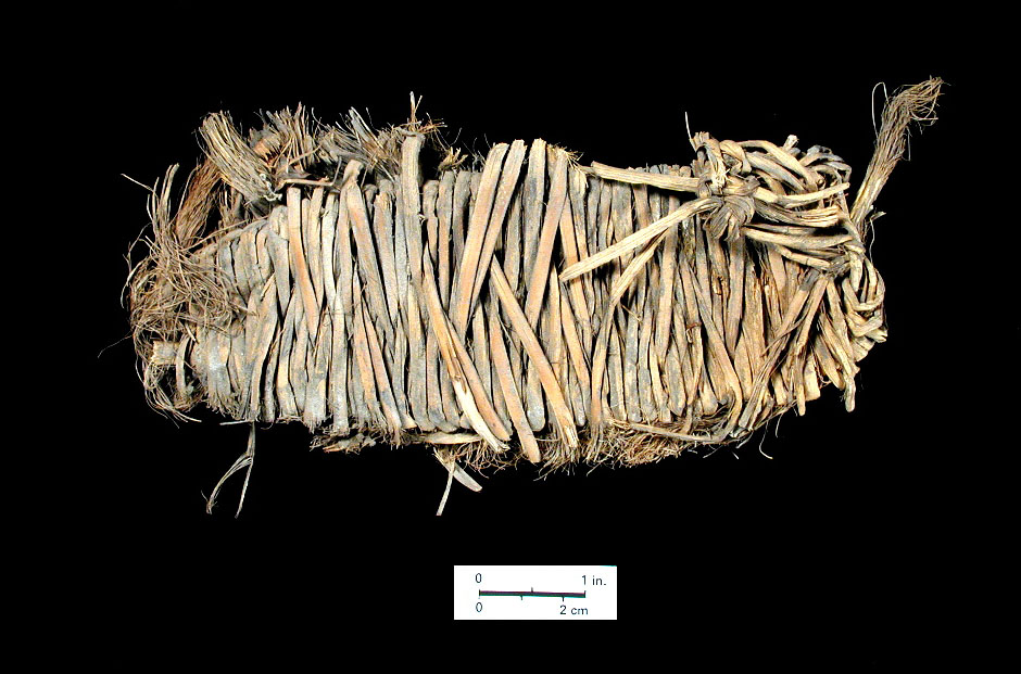 wrapped in plant fiber strips, perhaps used to attach fiber