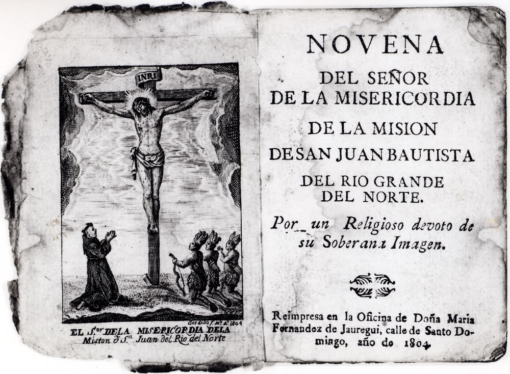 Title page and frontispiece of Novena booklet used at Mission San Juan Bautista. Image courtesy of Felix Almaraz, Jr.