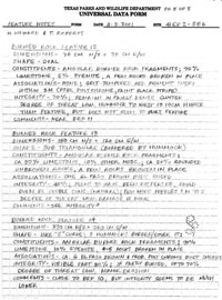 Documentation of some 125 burned rock features included extensive description, measurements, photographs, and shovel tests. The form shown, two of five pages for one feature recorded by TPWD archeologists Margaret Howard and Tim Roberts, indicates the level of detail required. Click to see full image.  |