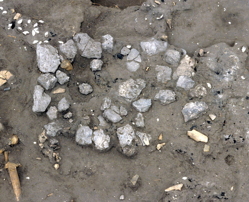 These cooking stones, bits of charcoal, ash, animal bones and snails were found in "association" with each other.