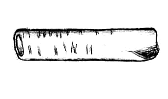 This drawing of a grooved and snapped bird bone bead shows faint sets of lines decorating the object. Drawing by Hal Story.