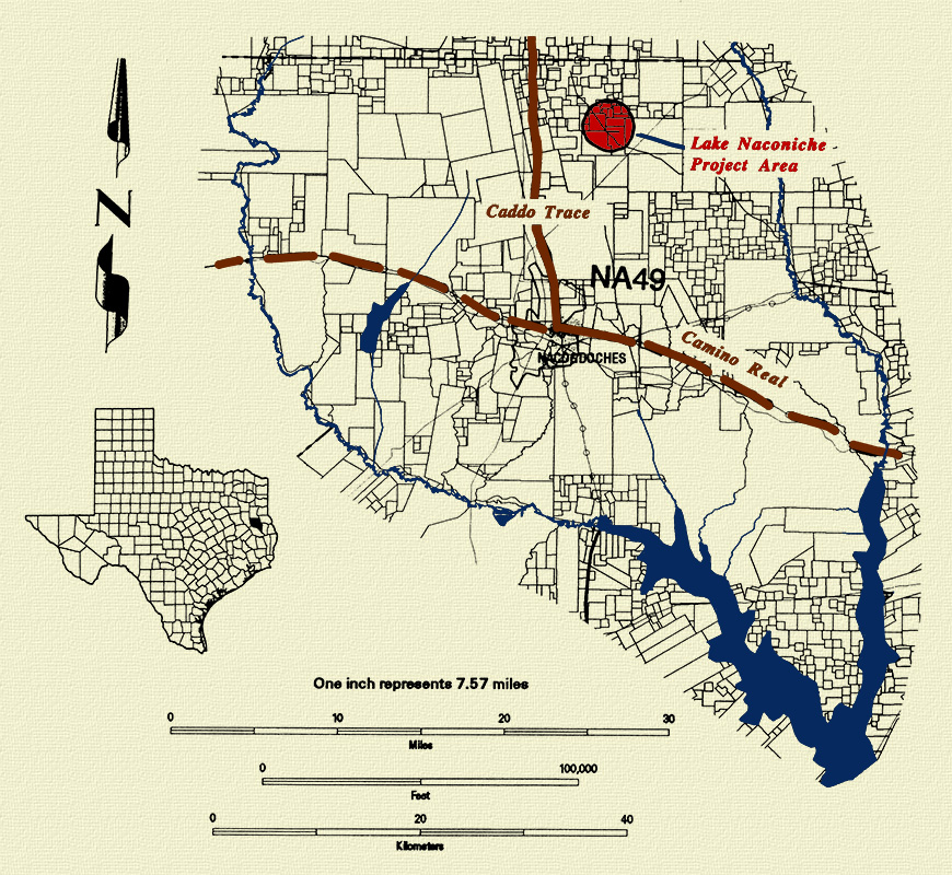 Nacogdoches County, showing the location of the Lake Naconiche Project area.