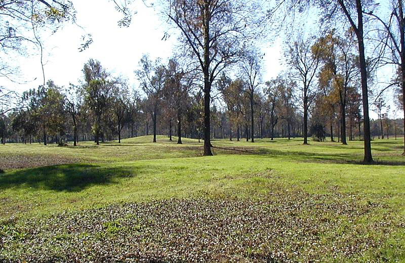 Crenshaw site today looking across main site area toward one of the mounds. The landowners of this portion of the site protect it by, among other means, maintaining it as an pecan orchard. Photo by Steve Black.