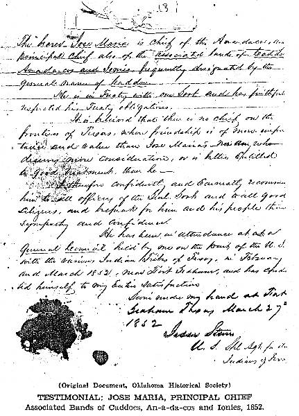 Need caption -- 1852 document "testimonial" from/about Jose Maria.