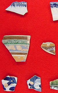 transfer-ware ceramics found at the site. Top row, Quebec pattern; middle, Lions