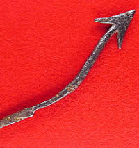 a conical metal arrowpoint, silver ornaments, glass beads,