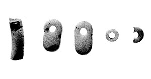 Intrusive (non-local) Mimbres Black-on-white ceramics were also identified at Ojasen and Gobernadora. Other artifacts recovered from the sites include bone awls, beads, and a needle, as well as shell pendants, beads, and fragments of bracelets and a tinkler. The shell artifacts are similar in many regards to those from the Mimbres region of southern New Mexico and the Casas Grandes region of northern Chihuahua, and may have originated in these places.