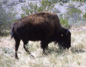 Juvenile bison grazing at Nine Point Mesa in Brewster County. The Chisos were known to travel north across the Rio Grande to hunt bison. Photo by Andy Cloud.  |