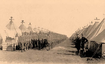 World War I brought high demand for candelilla wax, used to waterproof tents and other military equipment, and fed the "great wax rush." This scene is from Camp MacArthur, Texas, circa 1918.