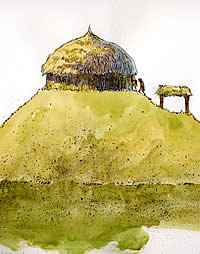 Some graves were covered over with a framework of poles and long grass, to make a roof-like covering over the bodies.