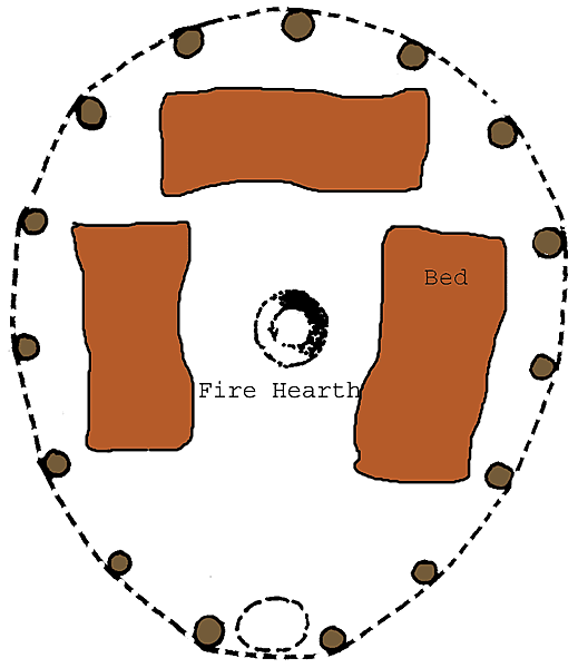 Sketch of what the inside of a tipi might have looked like, from above. Doors often faced east toward the rising sun. Close Window