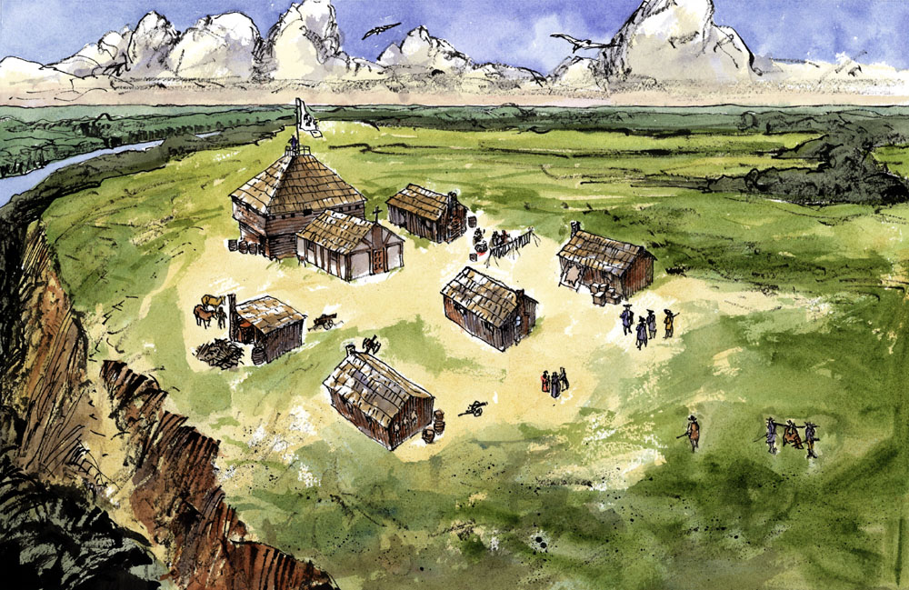 Archeologists outline the area of La Salle’s headquarters building in tape.